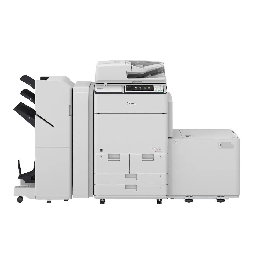 La Canon imageRUNNER ADVANCE C7565i es una multifuncional de alto volumen diseñada para entornos profesionales exigentes, con velocidades de impresión de 80 ppm en blanco y negro / 70 ppm en color (C7580i III), resolución de impresión de 2,400 × 2,400 dpi, escaneo dúplex con lectura de hasta 240 ipm (B/N) / 220 ipm (color), y capacidad de papel máxima de 9,300 hojas. Incluye bandejas para diferentes gramajes de papel, soporte para tamaños hasta 13″×19″, panel táctil de 10,1″ con interfaz tipo smartphone, múltiples opciones de acabado como grapado, plegado y cuadernillos, y conectividad móvil/cloud. Viene equipada con funciones avanzadas de seguridad (autenticación de usuario, cifrado, control de acceso y protección de firmware), soporte para flujos de trabajo digitales y eficiencia energética certificada, lo que la convierte en una solución robusta y versátil para producción interna, reprografía corporativa o centros de impresión internos.